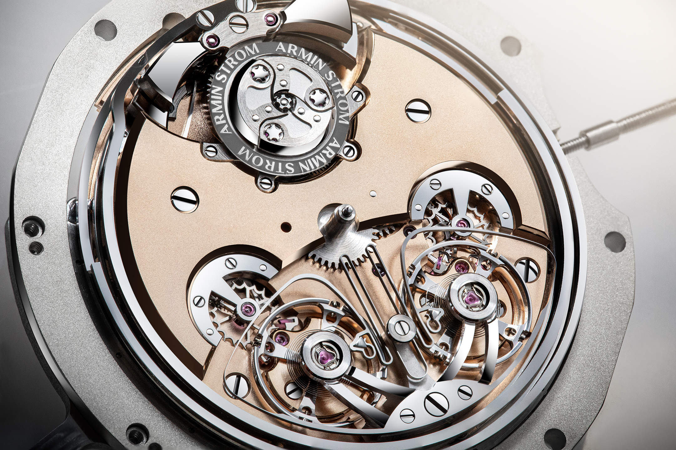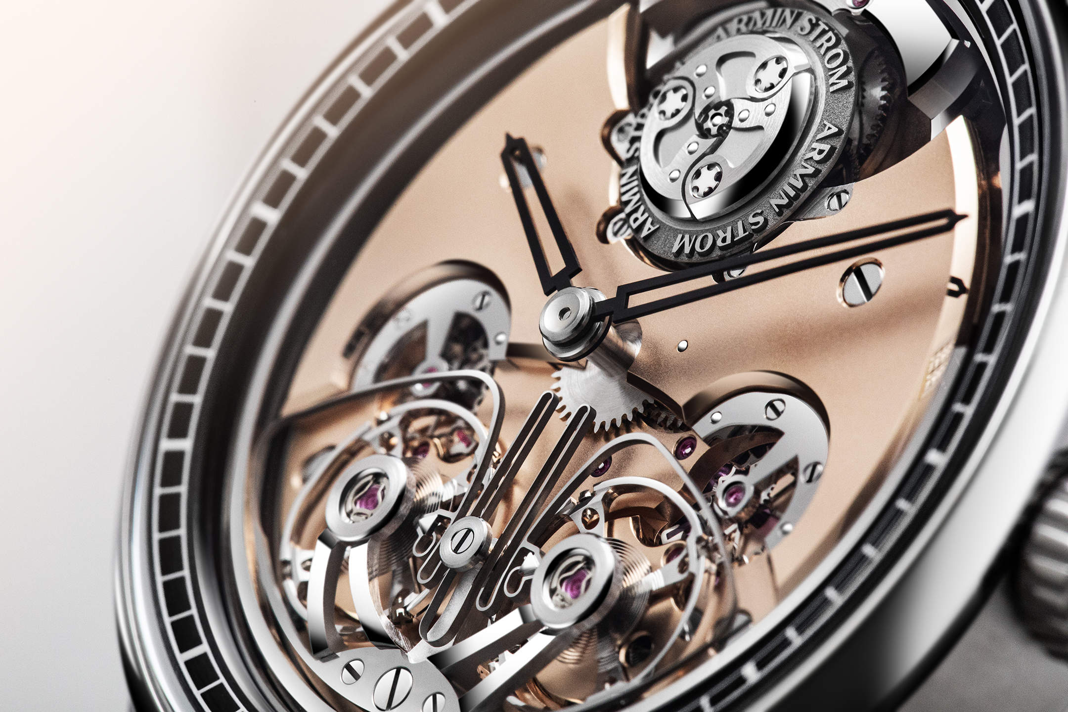 The new manual-wind calibre ARR25 is built around the patented resonance clutch that synchronises two fully independent trains – each with its own barrel, gear train, escapement and balance. The clutch has been reoriented to animate upward, while the twin balances stay dial side, turning the physics lesson into a daily companion rather than a lab demo.