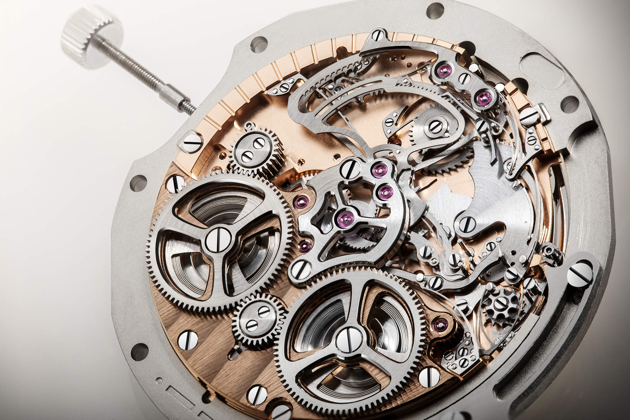 Finishing follows a tone by tone approach. Mirror-polished hammers, gongs and the resonance clutch spring contrast with a frosted mainplate and bridges. Hand-bevelled edges and polished sinks catch the light without shouting. Flip the watch and you find Geneva stripes, straight and circular graining, and modern textures layered for depth and contrast. Nothing is left unfinished, including the parts you will only meet during a future service.