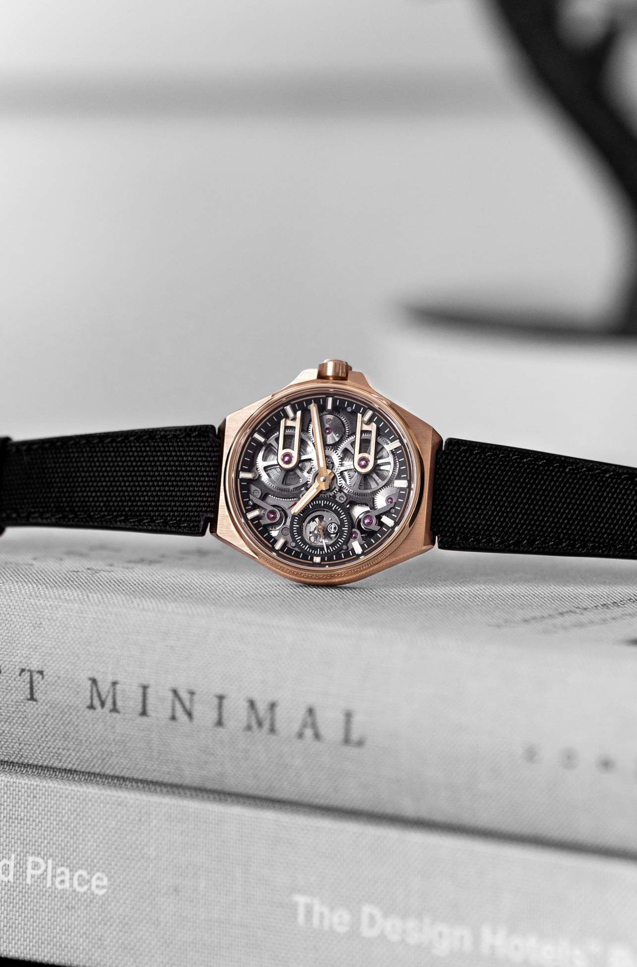 Embracing transparency quite literally, every component of the Calibre ARM21 is hand-decorated, flaunting Armin Strom’s commitment to traditional craftsmanship. The rose gold tone of the finger bridges adds a nice warm touch, combining perfectly with the lavish details like Geneva stripes and polished bevels.