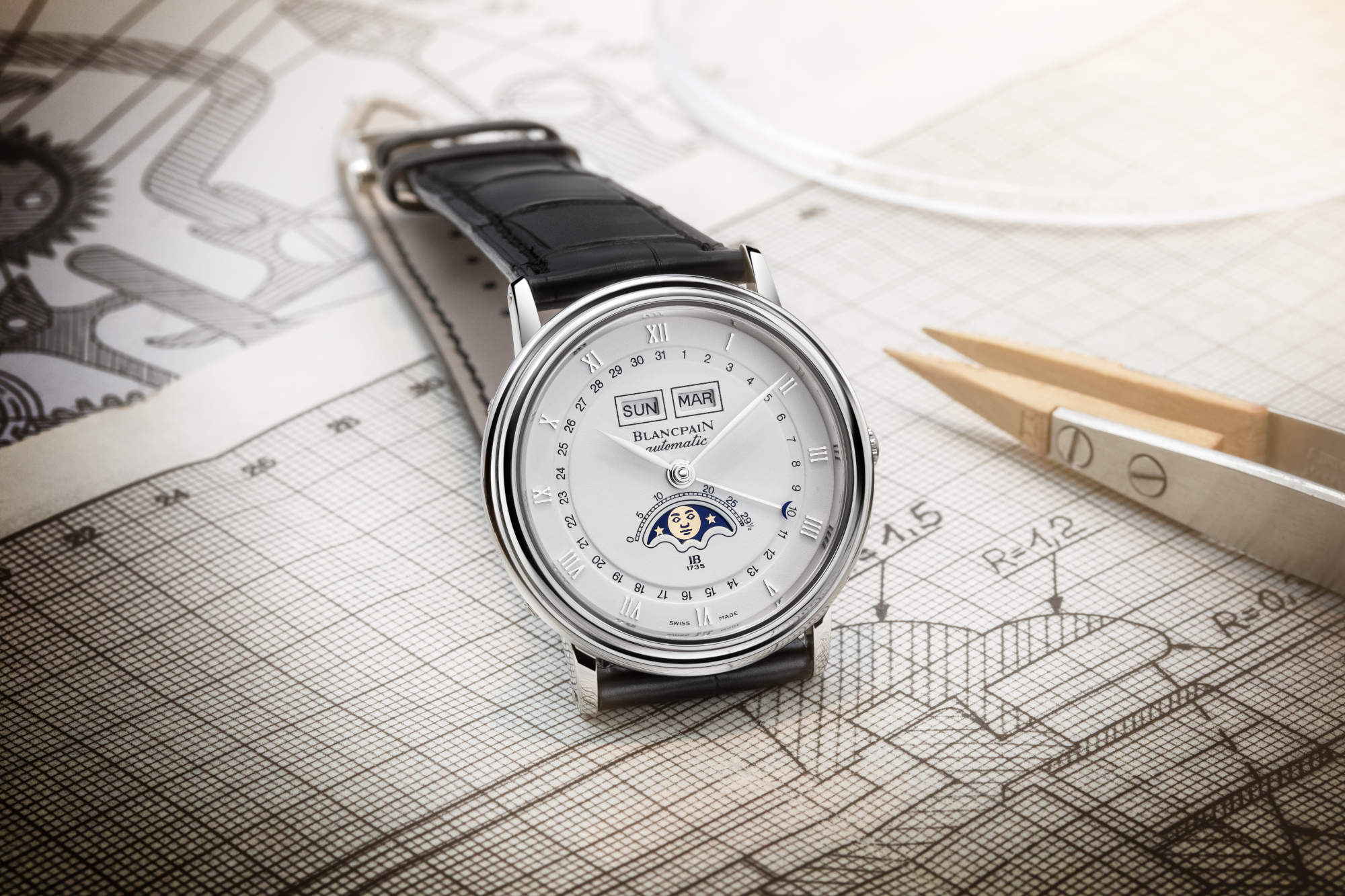 Blancpain faced the quartz crisis by choosing craft over convenience. In the early 1980s, it doubled down on mechanical watchmaking, and in 1983 the complete calendar moon phase set the codes for Villeret. The later push into high complications – the Six Masterpieces and the 1735 – did not dilute that vision. Today the modern Villeret carries this heritage forward with quiet confidence.
