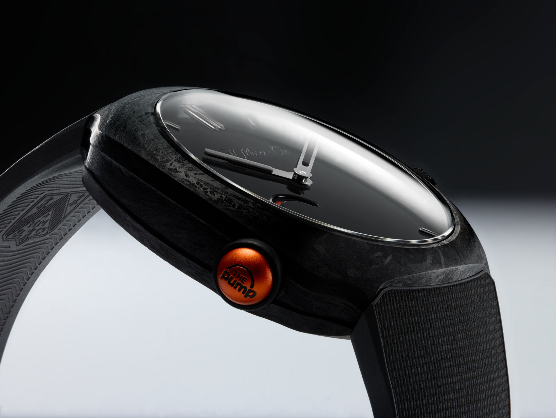 H. Moser & Cie. brings Reebok‘s cult gesture to horology with the Streamliner Pump, launched at Watches and Wonders 2026. A press of an anodised aluminium button winds the movement and nudges the power reserve, reconnecting the hand to the mechanism with a smile rather than a lecture.