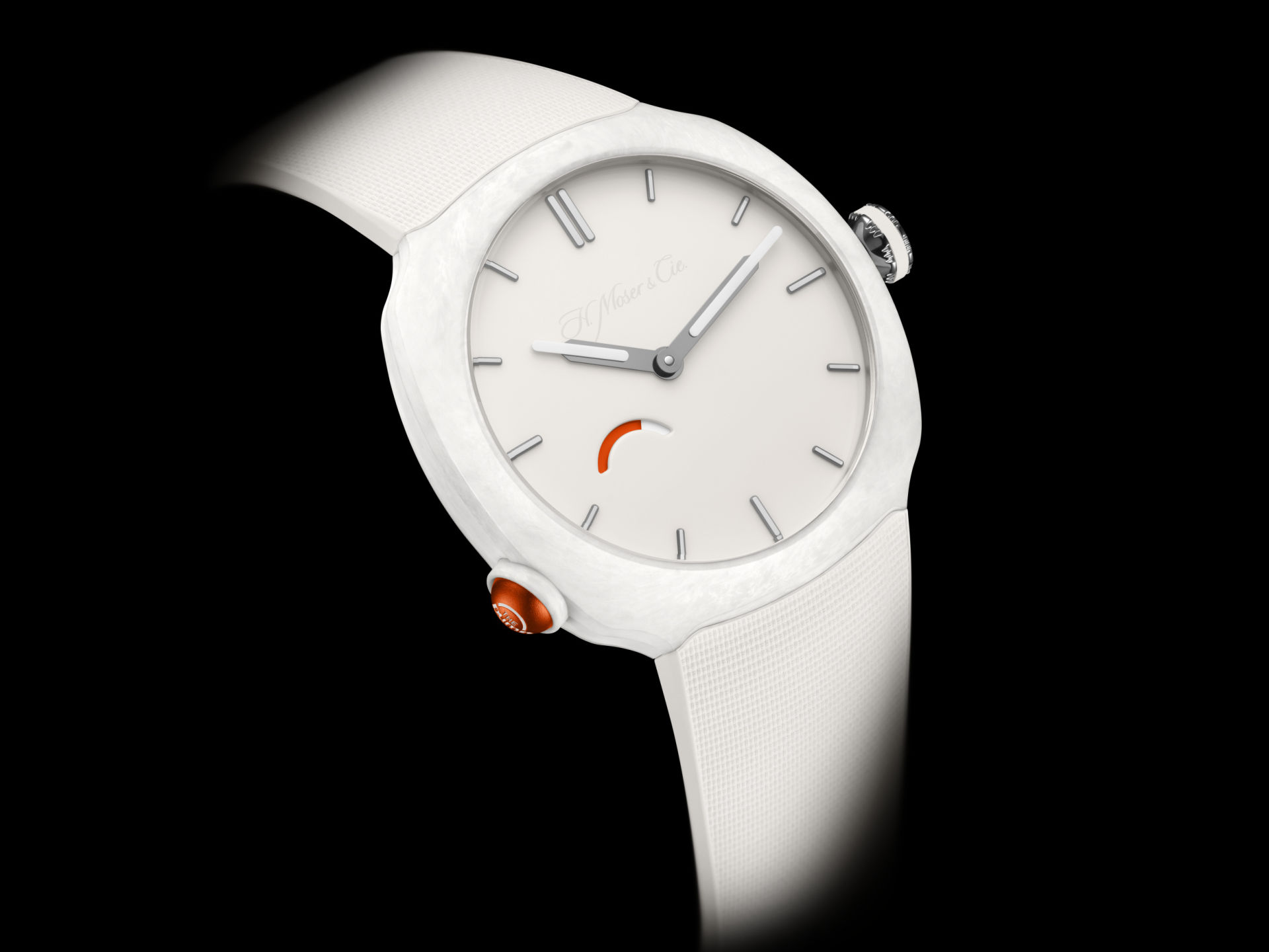 Two references, each limited to 250 pieces: 6103-2200 in black forged quartz on black rubber, and 6103-2201 in white on white. A steel pin buckle bears the Moser signature. In parallel, Moser and Reebok created an exclusive Pump sneaker for Streamliner Pump owners and friends, a neat echo from wrist back to foot. The project comes from the Moser Exploration LAB™, where playful ideas are given room to breathe.