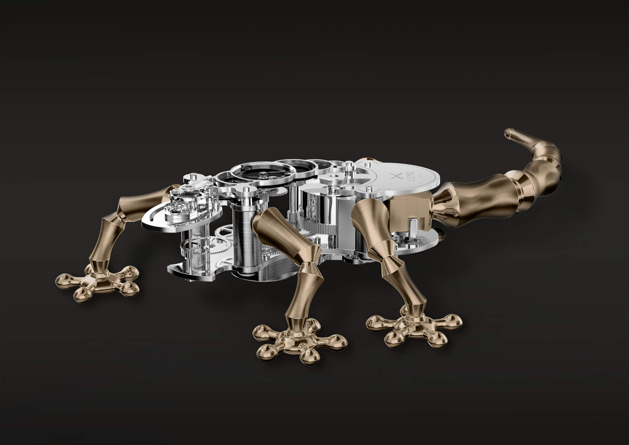 The Gekko takes a different path, trading salt flats for bark and stone. Inspired by a small survivor of vast ages, it uses an openworked skeleton movement to echo the creature’s quiet adaptability. The metaphor is clear enough – resilience, grip, and poise – yet the execution stays measured. Nature, time, and artistry are set to the same tempo without slipping into kitsch.