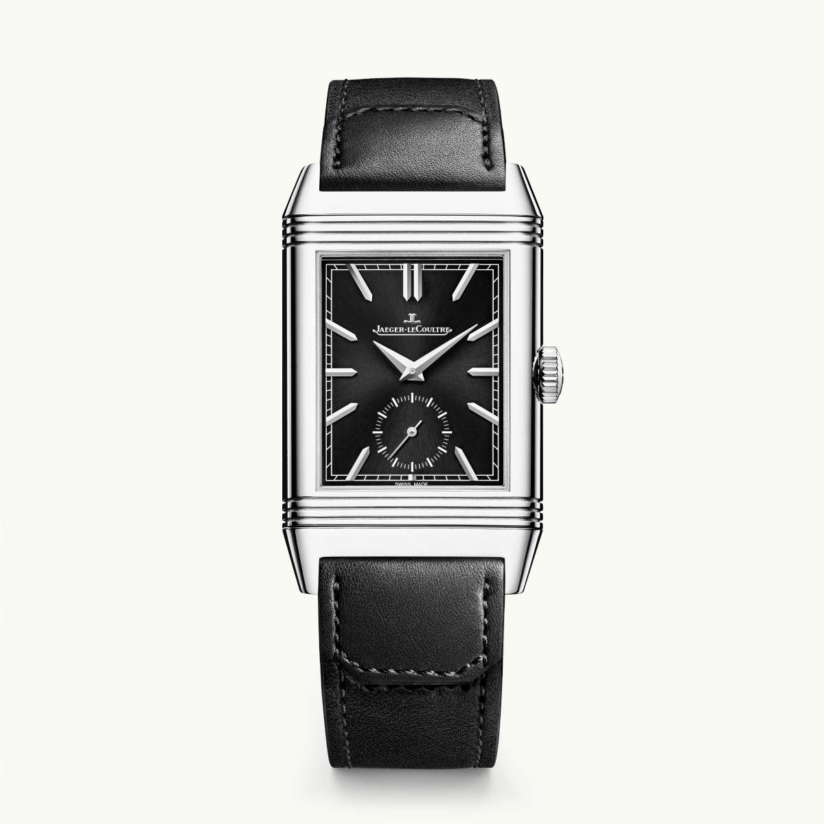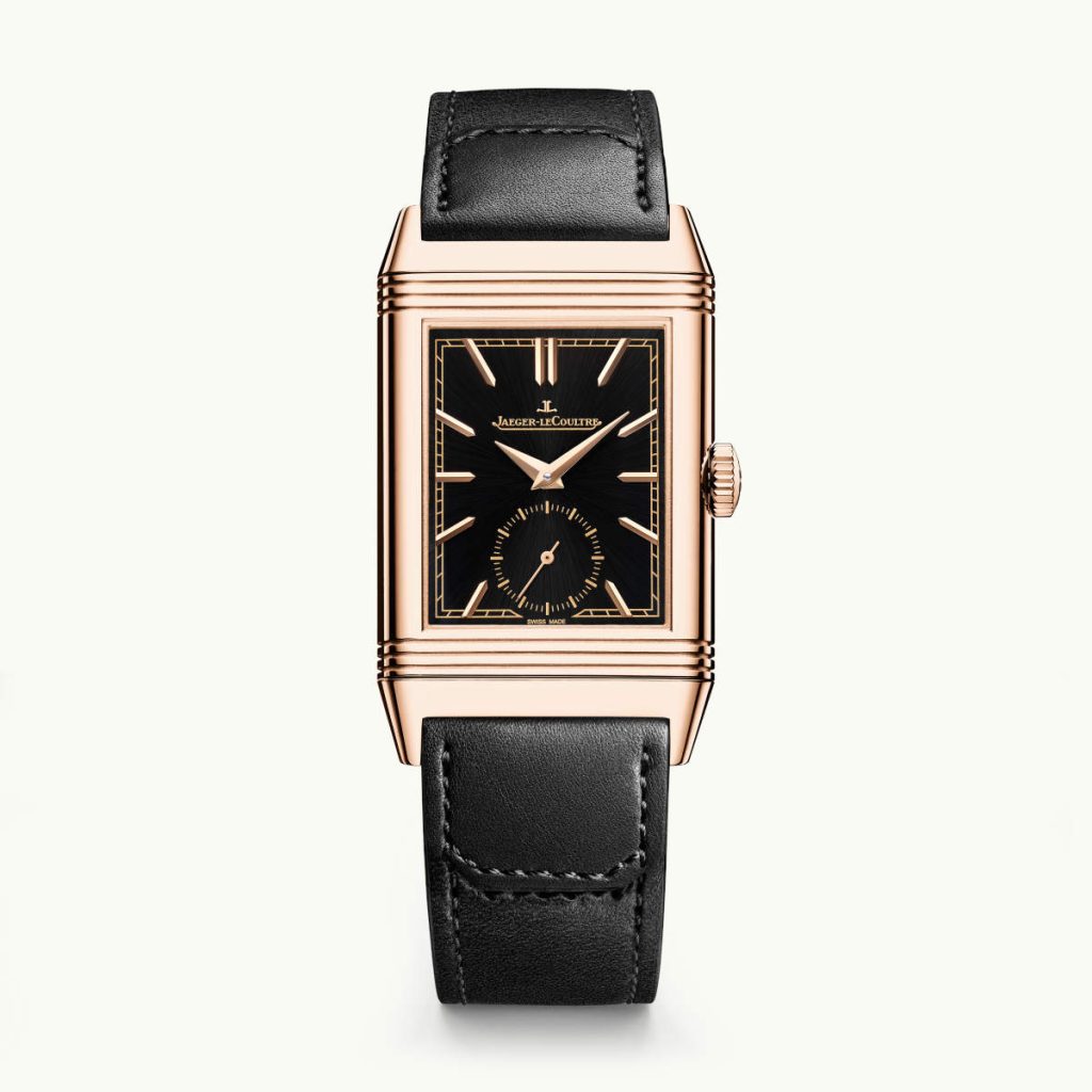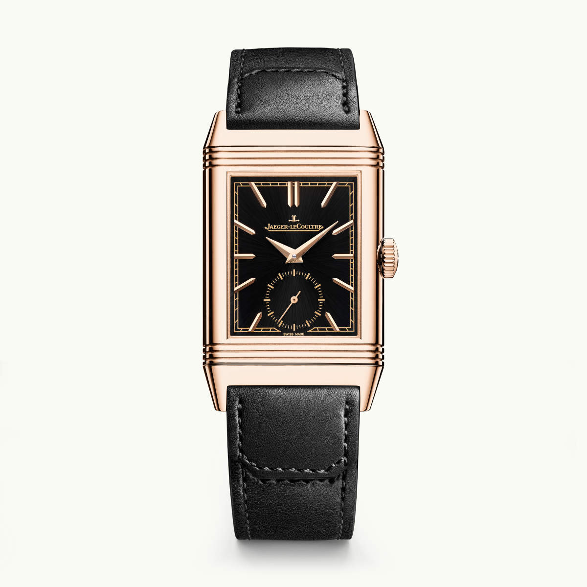 The Reverso Tribute Small Seconds revives the codes of the 1931 Reverso and the black dials of that era. Its sunray-brushed black dial sets a sharp contrast against a polished pink gold case and applied indexes, heightening the Art Deco character. It is legible, composed, and confident – the sort of formalwear that does not need to raise its voice.