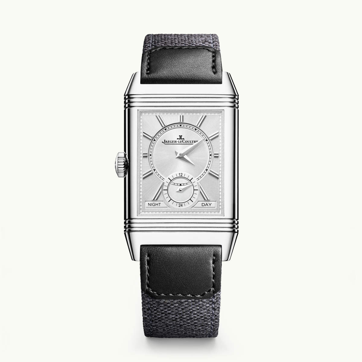 The Reverso Tribute Duoface Small Seconds nods to the colorful models made in 1931, when the design moved beyond the polo fields. Today it offers a sunray-brushed front dial in vivid blue or deep black, and a redesigned silver sunrayed back dial – a neat way to bring style without straying from the original intent.