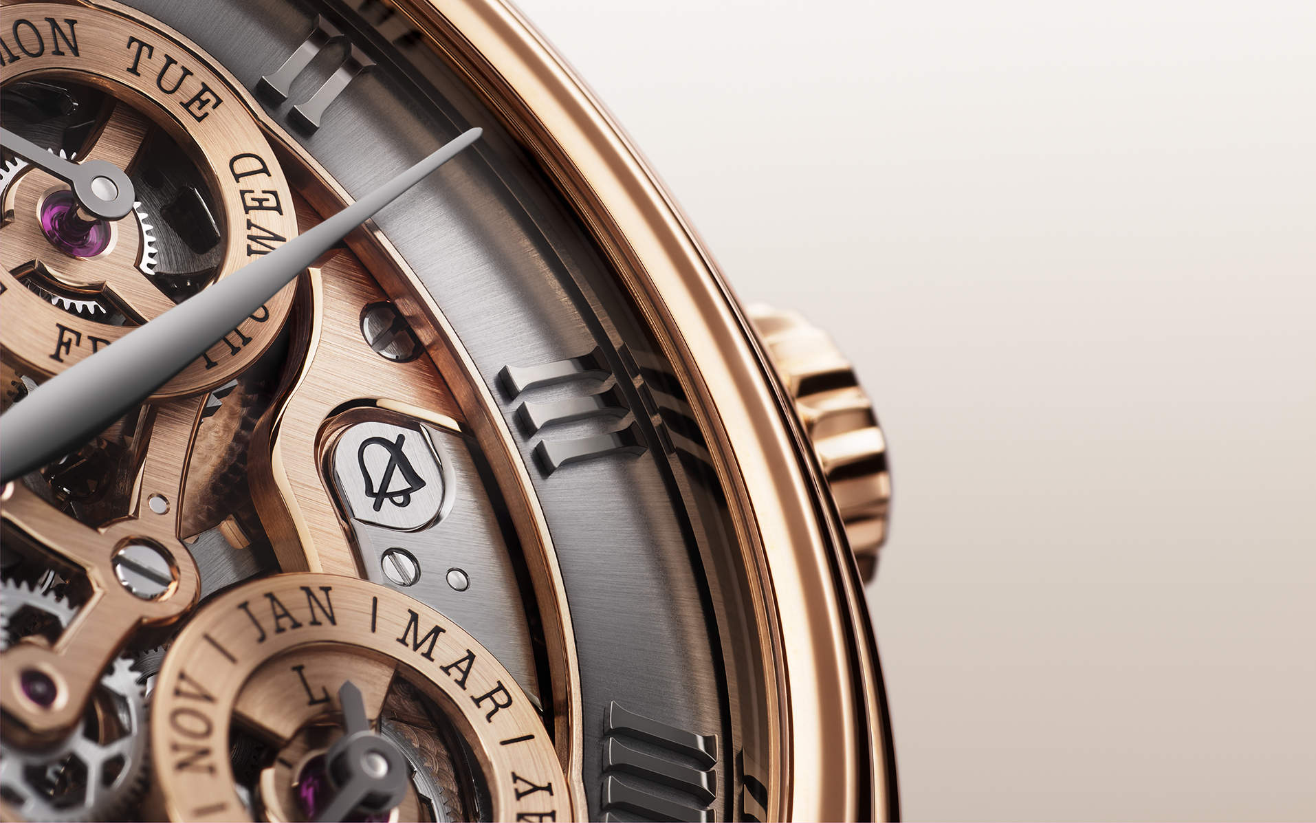Now, don’t let the dainty music fool you – this watch is no lightweight. It combines a grand sonnerie, petite sonnerie, minute repeater, a retrograde perpetual calendar, and a 4 Hz flying tourbillon, all nestled comfortably in a 47 mm case. It’s like fitting an entire orchestra into a concert hall meant for a string quartet.
